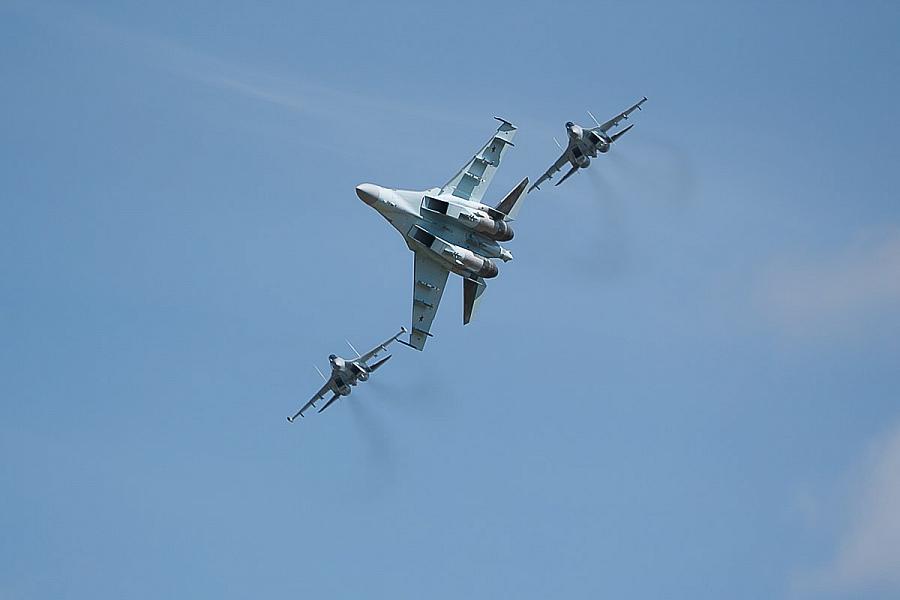 An Su-35 flew for about 15 minutes, allowing the pilot to do some aerobatic manoeuvres. A Be-200, which was designed for aerial wildfire-fighting, performed afterwards.